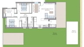 Rezort ponúka 2 typy 3 izbových zariadených apartmánov od 138 m2 a to na prízmí s bazénom alebo na poschodí so strešnou terasou a bazénom.
