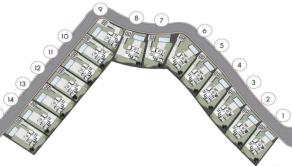 Rezort ponúka 2-podlažné 3 a 4 izbové vily so súkromným bazénom a pozemkom od 504 m2