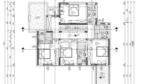Poschodie: štyri izby, štyri kúpeľne, chodba a terasa.