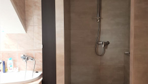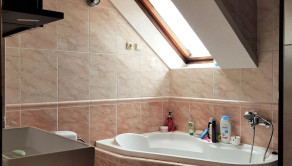 Poschodie: 2 izby, obývačka, kúpeľňa s vaňou a sprchovým kútom, WC.