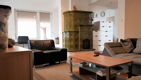 Kúrenie je plynové + kachľová pec.