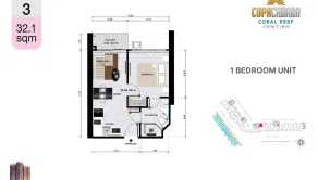 Realitná kancelária Leaders & Partners Vám predstavuje vzorový 1 izbový apartmán typ 3 s balkónom v apartmánovom komplexe Copacabana Coral Reef, Pattaya-Thajsko.