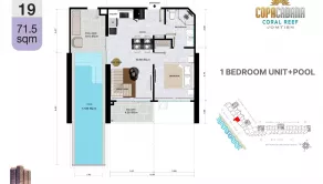Realitná kancelária Leaders & Partners Vám predstavuje vzorový 1 izbový apartmán s bazénom typ 19 s balkónom v apartmánovom komplexe Copacabana Coral Reef, Pattaya-Thajsko.