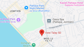 Lokalita: Thajsko- Pattaya-Jomtien- View Talay 5 D. Vzdialenosť od mora: 450 metrov-5 minút chôdze. V blízkosti sa nachádzajú reštaurácie, kaviarne obchody, 7/11….