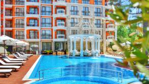 Realitná kancelária Leaders & Partners Vám ponúka na predaj zariadený apartmán 3+kk (96 m²) s dvoma kúpeľňami a dvoma balkónami so spoločným bazénom v obytnom rekreačnom SPA komplexe "Harmony Palace" v lokalite Slnečné pobrežie v Bulharsku. Apartmán sa nachádza približne 300 m od mora a pláže.