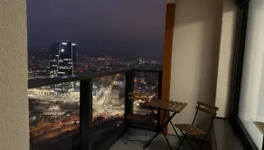 Byt s úžitkovou plochou 54 m², lodžiou o výmere 5 m² a pivnicou 2 m² sa nachádza na 30. poschodí z 35 v novostavbe s výťahom a 24-hodinovou recepciou. Z bytu sa naskytá jedinečný panoramatický výhľad na mesto a hrad.