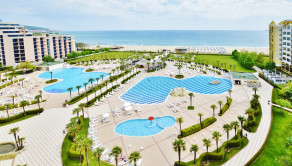 Realitná kancelária Leaders & Partners Vám ponúka na predaj zariadený apartmán 2+kk (82 m²) s balkónom a spoločným bazénom v 4**** SPA Majestic Beach Resort v lokalite Slnečné Pobrežie v Bulharsku. Apartmán sa nachádza priamo pri mori.