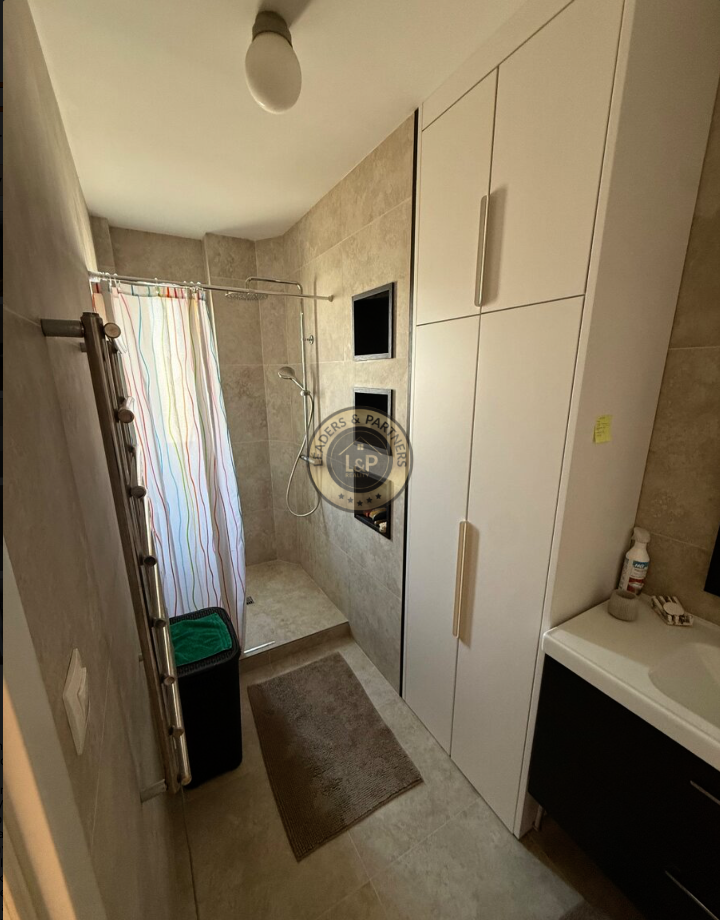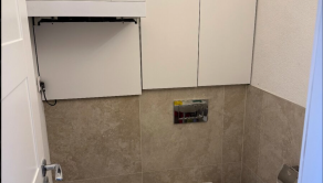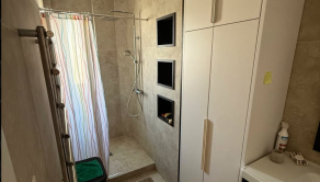 → Kúpeľňa s walk-in sprchovým kútom, práčkou a sušičkou