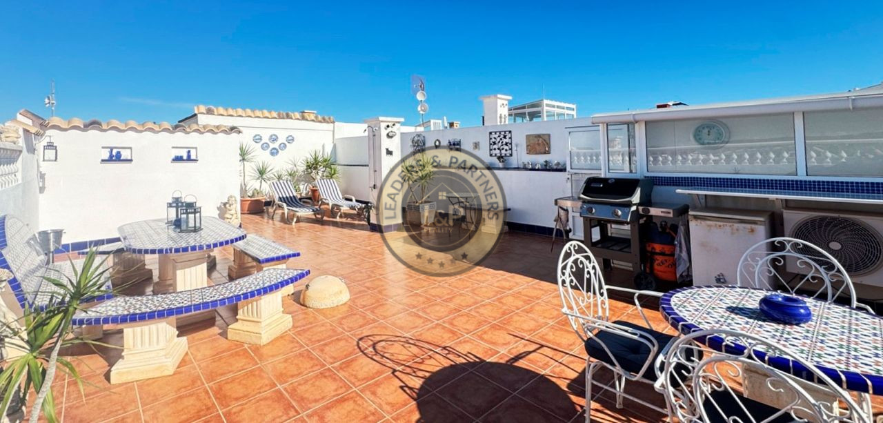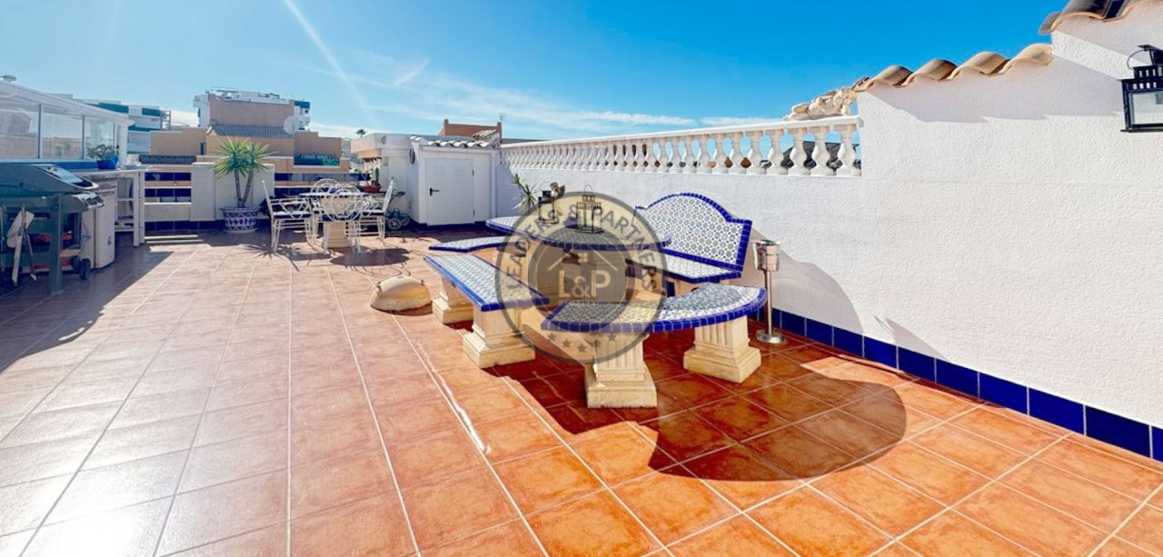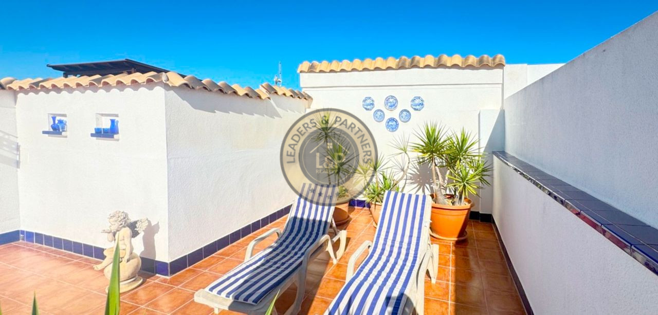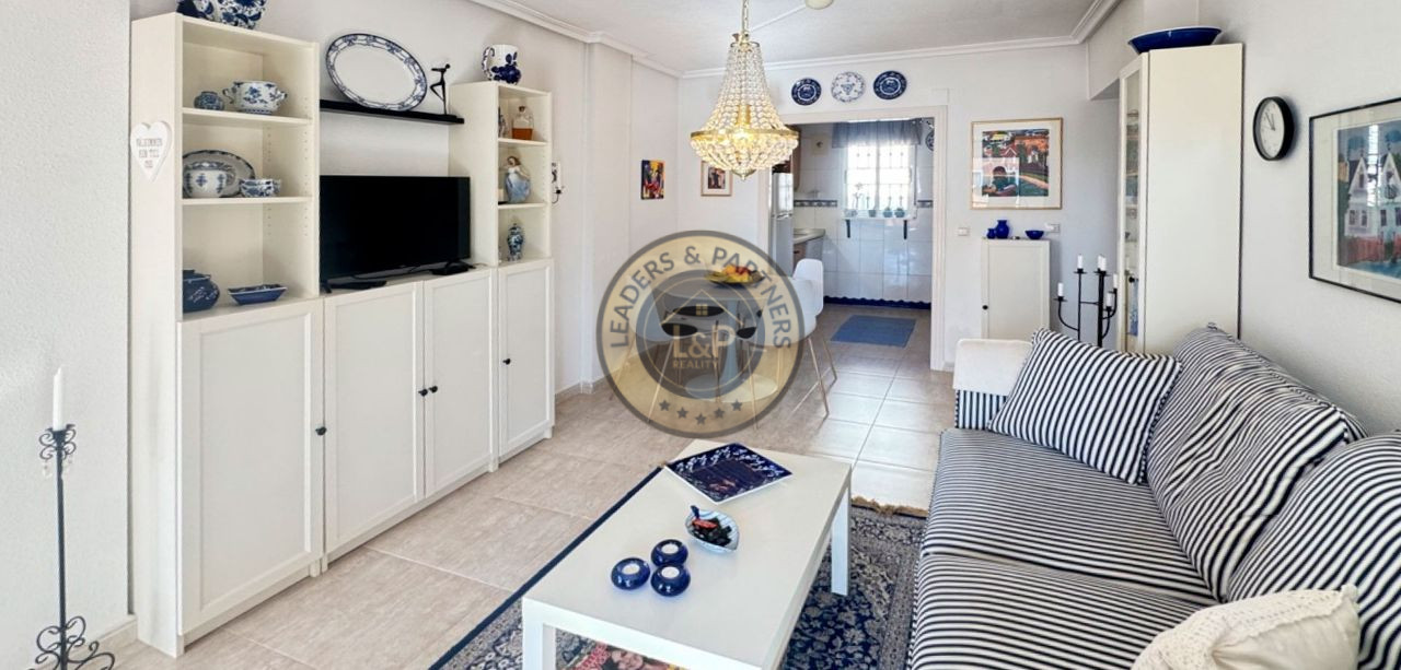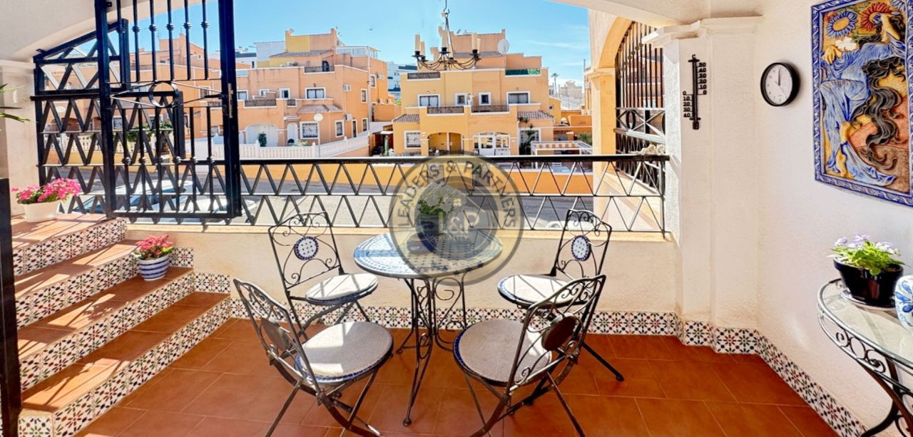 Realitná kancelária Leaders & Partners vám ponúka na predaj radový dvojpodlažný zariadený dom 3+kk (80 m²) s pozemkom (180 m²) veľkou strešnou terasou a balkónom v rezidenčnom komplexe so spoločným bazénom v lokalite Orihuela Costa-Los Altos v Španielsku.