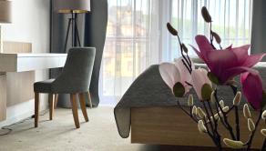 V otvorenom priestore sa nachádza rozkladací gauč, LCD televizor s kablovou TV a pri veľkom okne dvojposteľ. V apartmáne sa pohodlne vyspia 4 osoby. Súčasťou apartmánu je aj kuchynský a jedálenský kút, ktorý majiteľ alebo hostia môžu využiť v prípade, že sa nebudú stravovať v hotelovej reštaurácii.