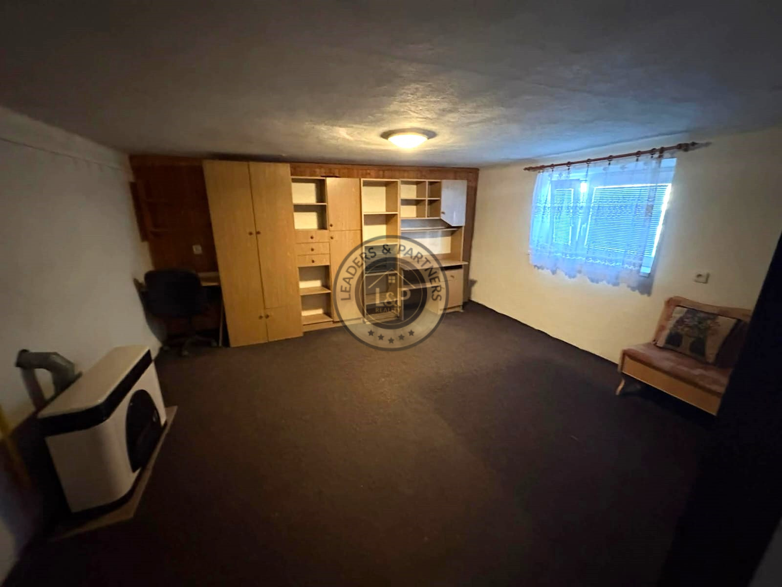 Prízemie- pivné priestory: Chodba, kuchyňa, menšia kúpeľňa, obývačka, spálňa, komora, technická miestnosť, sklad
