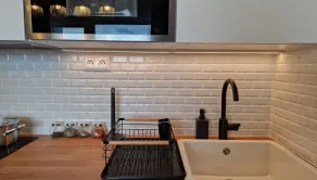 → Kuchynský kút s chladničkou, mikrovlnkou a indukčnou varnou doskou