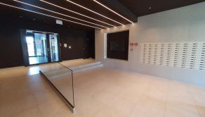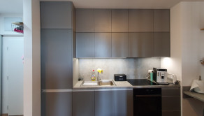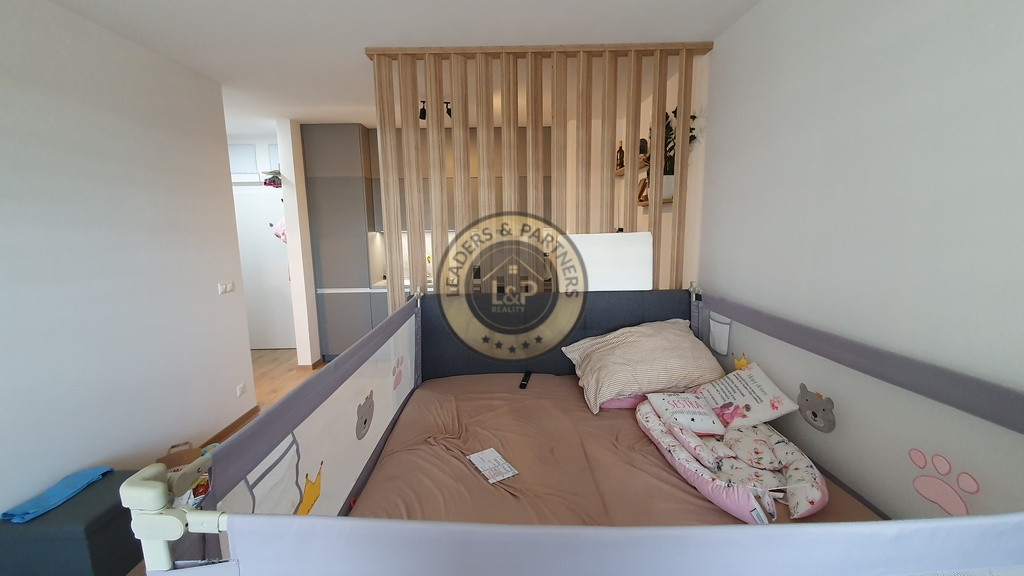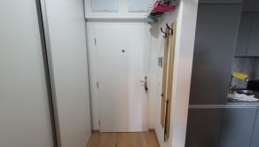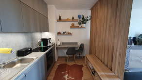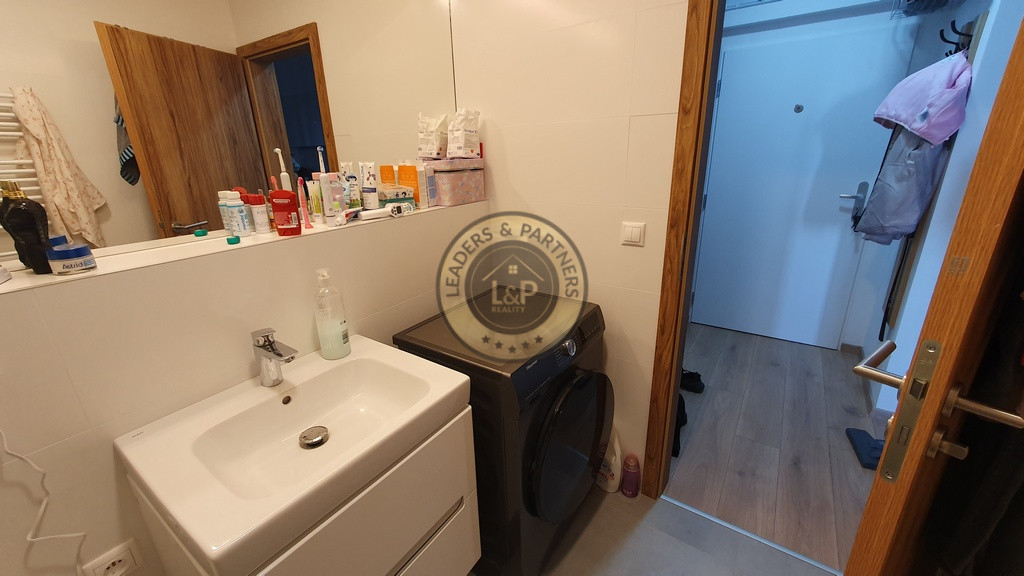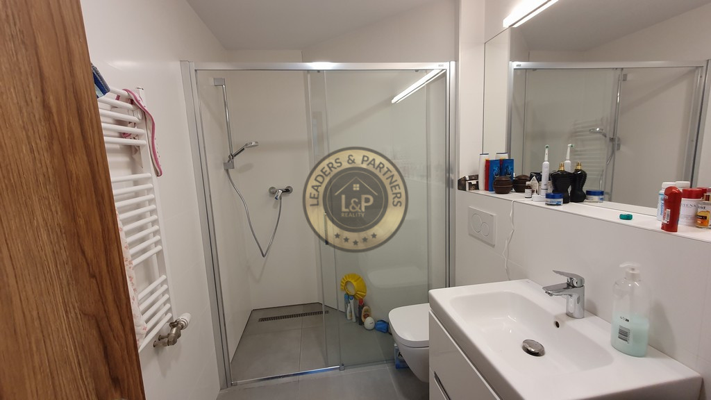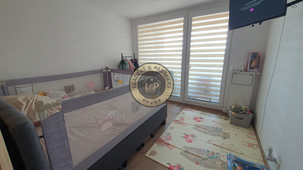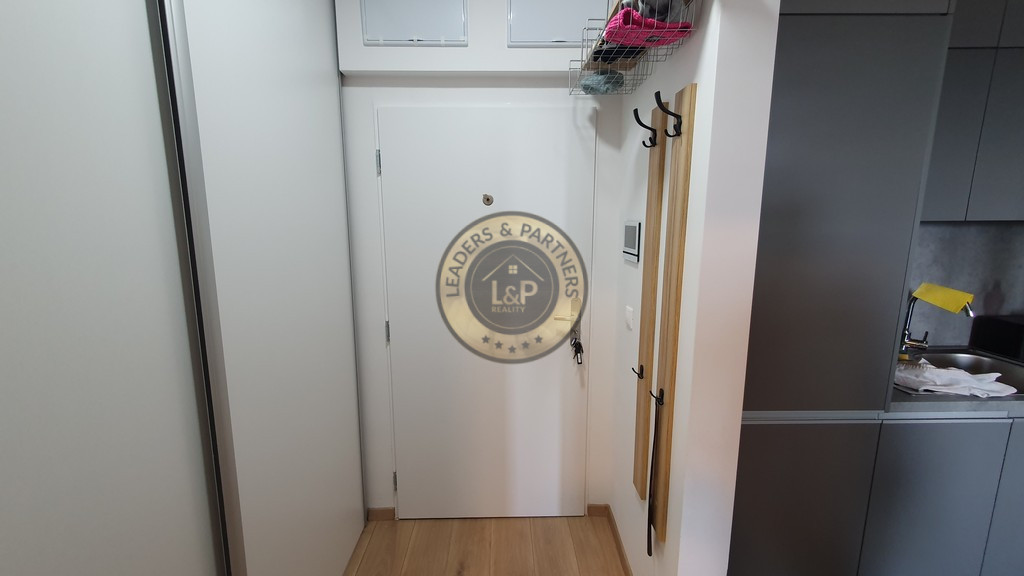 Krásny a zariadený 1 izbový byt s loggiou a celkovou plochou 32.92 m2 pozostávajúci z izby s kuchynským kútom /5.75 x 3.48 m/ + kúpeľňe s WC /2.96 x 1.78 m/ + vstupnej chodby /1.93 x 1.83 m/ + loggie /3.89 x 1.23 m/ sa nachádza na 7. posch z 11 v novostavbe s 3 výťahmi. Byt je orientovaný na juh do tichej zóny a je kompletne zariadený s kuchynskou linkou so spotrebičmi /vstavaná ľadnička a mraznička, umývačka riadu, rúra na pečenie, varná doska/, v kúpeľni je práčka so sušičkou, v chodbe je vstavaná skriňa, vchodové dvere sú bezpečnostné 9 bodové. V byte je elektronický video vrátnik Dom má vlastnú kotolňu.