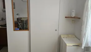 chladnička, mikrovlnná rúra, plynová varná doska, práčka, vlastné kúrenie.