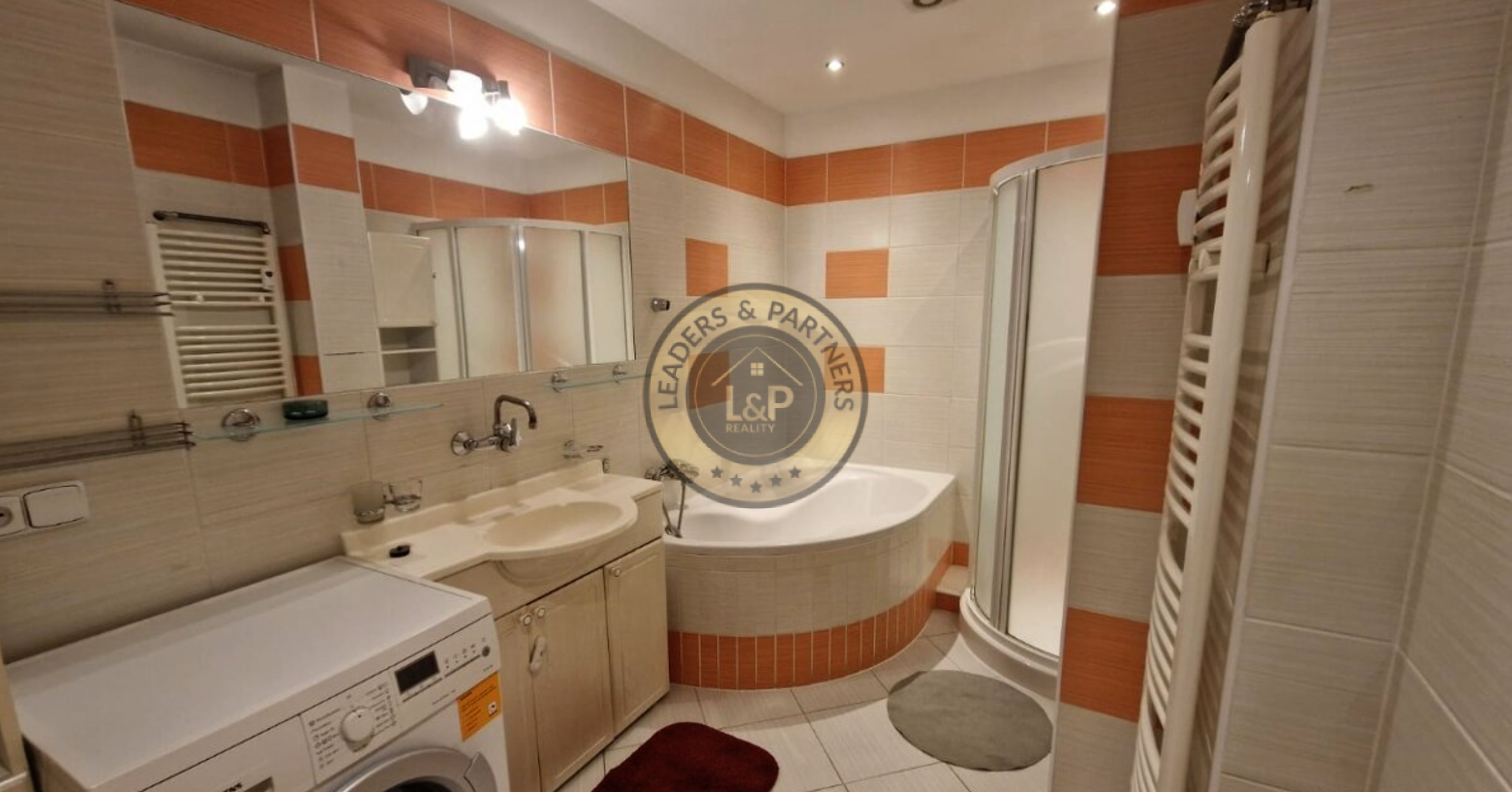→ kúpeľňa s vaňou, sprchovým kútom a práčkou