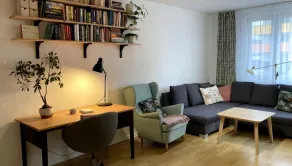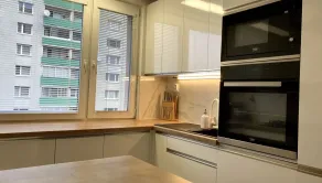 Samotný byt je veľmi moderne a kvalitne zariadený. Veľmi príjemne je zariadená loggia s posedením a tieňom počas celého dňa. Byt sa nachádza vo veľmi tichej a kľudnej lokalite. V okolí bytového domu sa nachádza množstvo zelene , materská škola , základná škola ,zástavka MHD, zdravotné stredisko. Vlaková stanica s autobusovú sa nachádzaj od bytu približne 15 minút peši. Veľmi dobré je aj napojenie na výjazd smerom von z mesta.