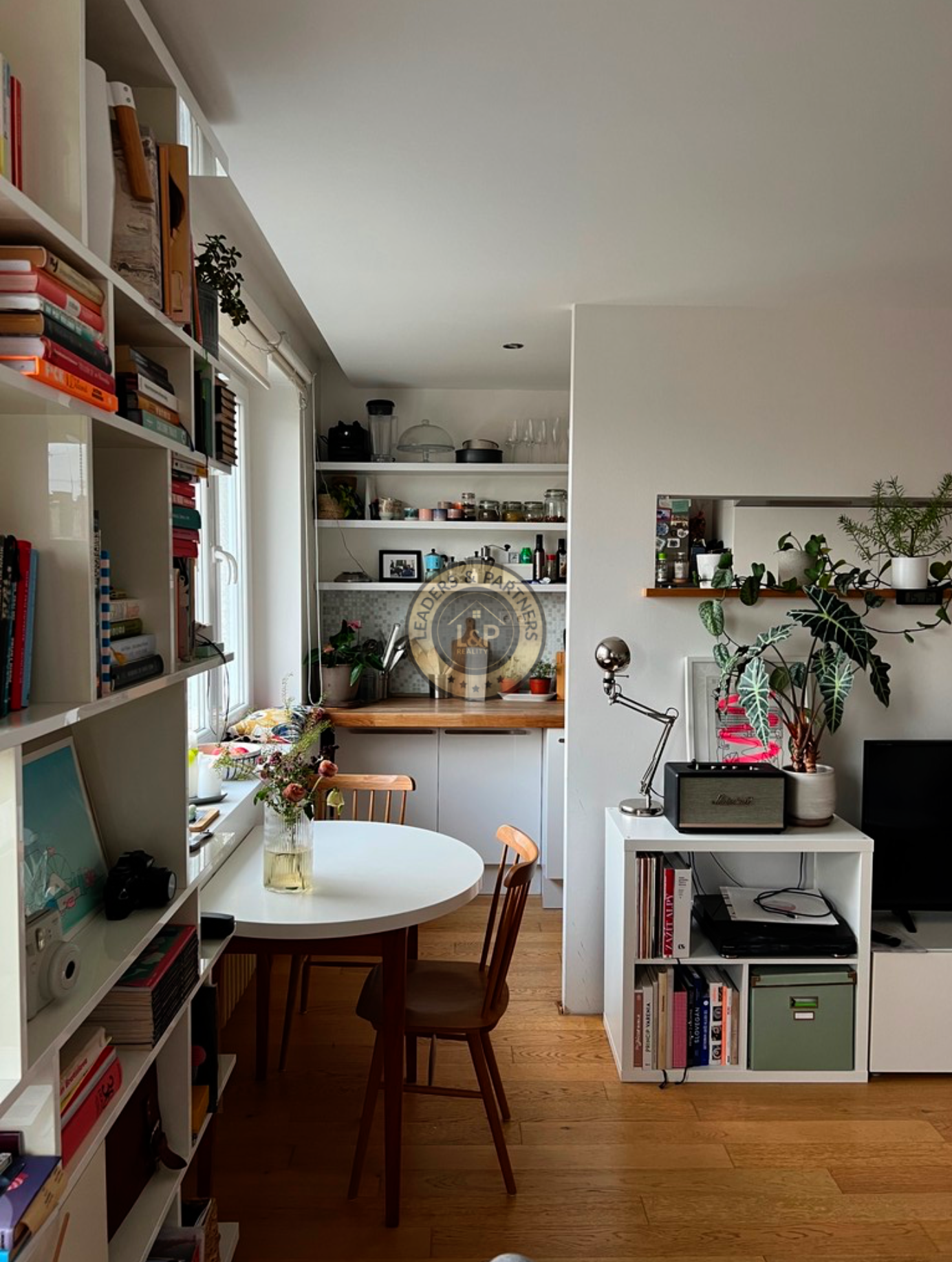 → obývacia časť s knižnicou a kuchynským kútom