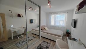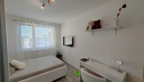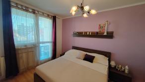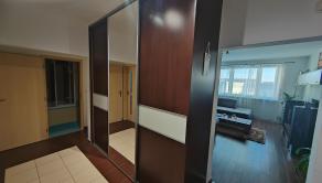 Priestranná vstupná chodba so vstavanou skriňou – 3m. Po ľavej strane chodby je priestranná kuchyňa s jedálenským stolom. Kuchynská linka so vstavanými spotrebičmi – plynová varná doska, elektrická rúra, umývačka riadu, digestor s vývodom von. V kuchyni sa nachádza tak isto vstavaná skriňa využiteľná ako špajza. Nasleduje murovaný šatník, samostatné WC a detská izba. Kuchyňa a detská izba sú orientované na SZ. Po pravej strane chodby sa nachádza obývačka, z ktorej sa prechádza do spálne s východom na loggiu a ďalšia samostatná detská izba. Obývačka, spálňa a 2.detská izba sú orientované na JV. Na konci chodby je kúpeľňa s rohovou vaňou, umývadlom a práčkou. V byte je klimatizácia . 2 klimatizačné jednotky – predsieň a obývačka. V izbách je plávajúca podlaha v kuchyni, predsieni, šatníku, kúpeľni a WC je dlažba. Na všetkých oknách sú vnútorné žalúzie a sieťky proti hmyzu. Vstupné dvere sú bezpečnostné Sherlock.
