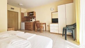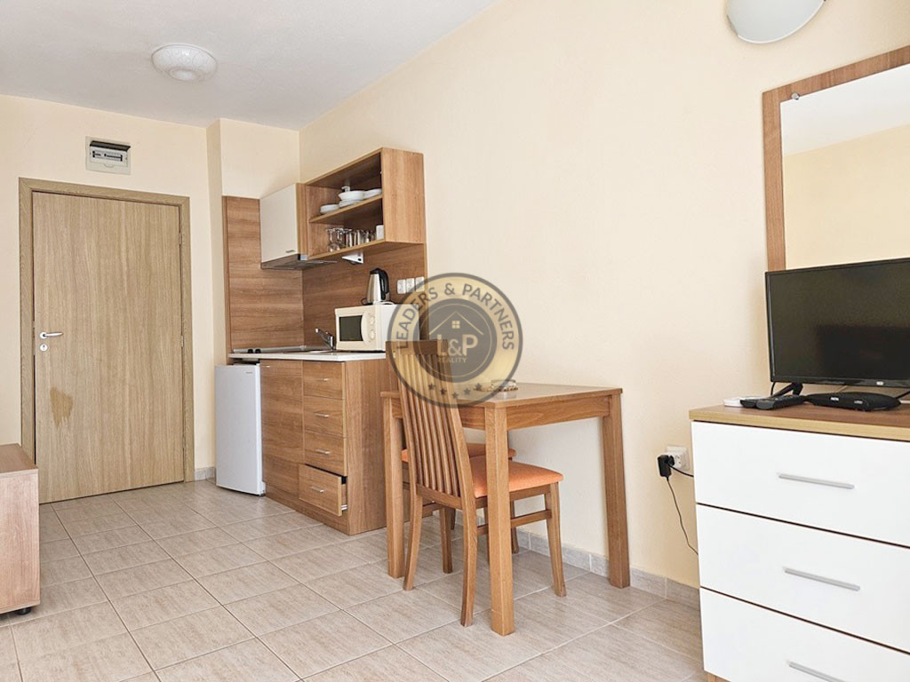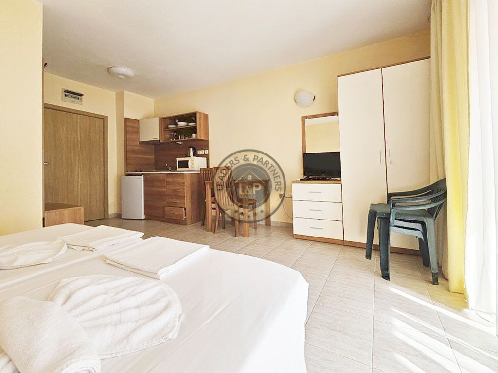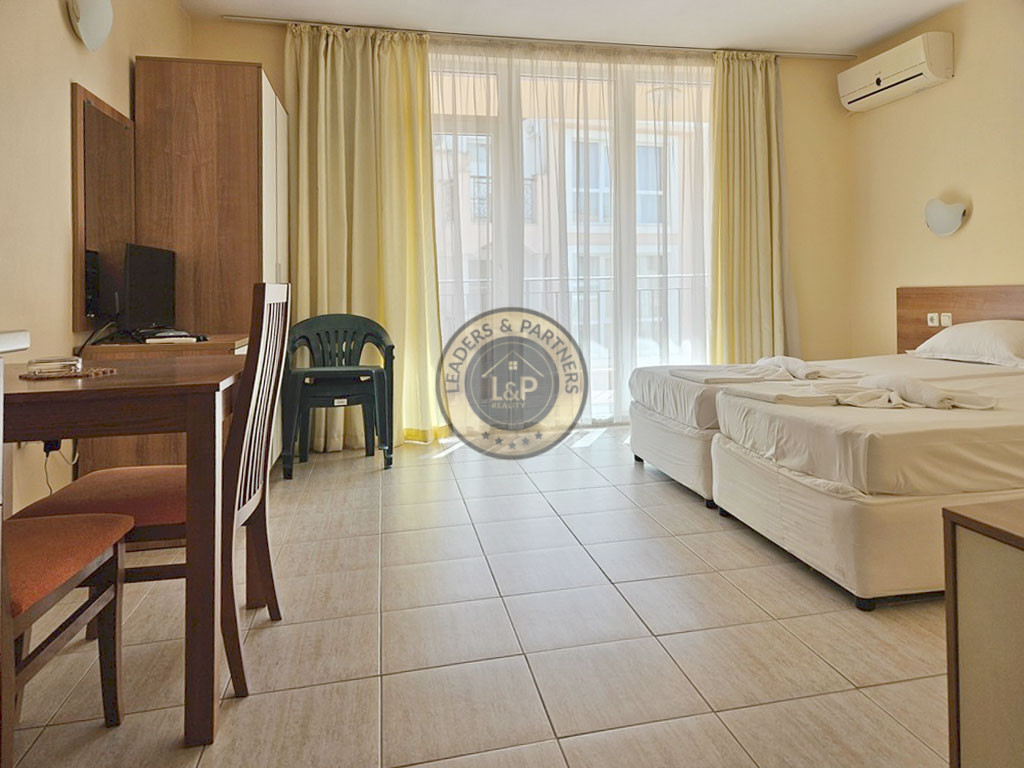 Realitná kancelária Leaders & Partners vám ponúka na predaj štúdio 1+kk (42 m²) s balkónom, ktoré sa nachádza v apartmánovom komplexe Hotel Polo Resort v obci Nesebar-Slnečné pobrežie v Bulharsku. Apartmán sa nachádza približne 700 metrov od mora a pláže Caco Beach.