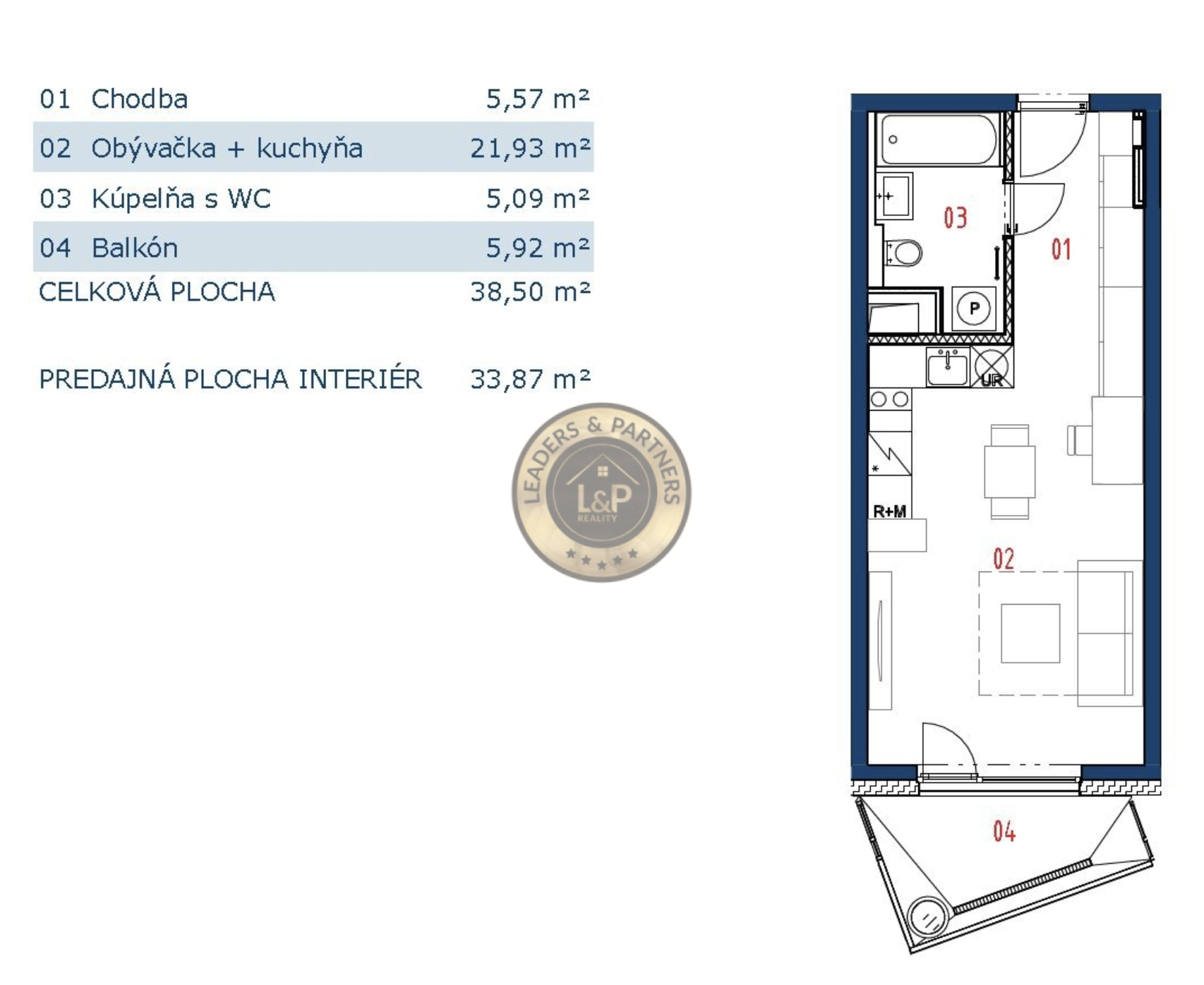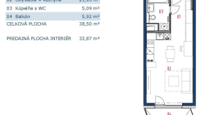 → Výmera celkom: 38,50 m²