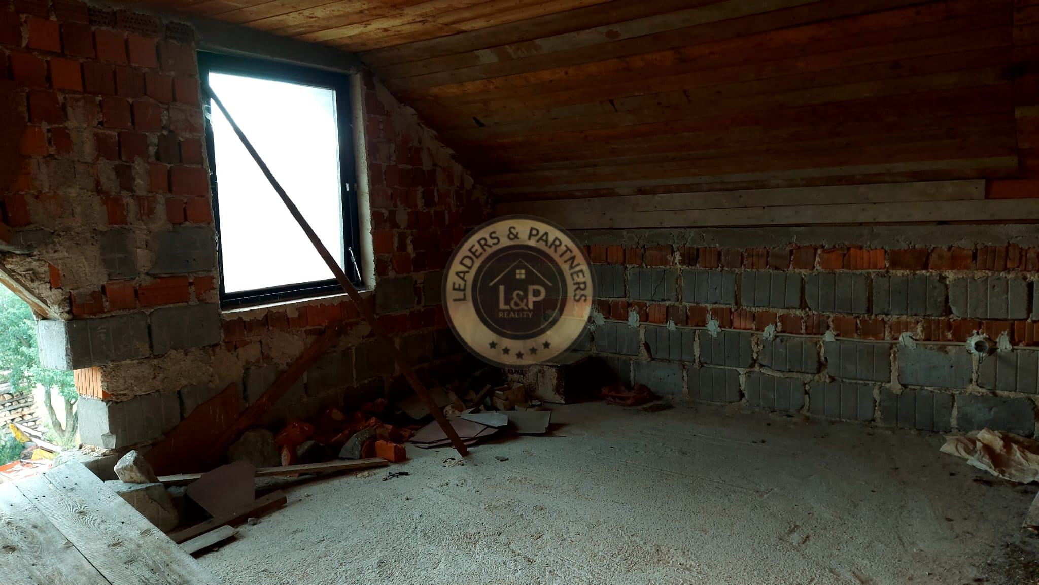 Použitý stavebný materiál je pórobetónová tvárnica a tehla /viditeľné na fotografiách/, strešná krytina eternit. Strecha zateplená minerálnou vlnou. Dokončené sú základné rozvody vody, elektriny a napojenie na kanalizáciu.