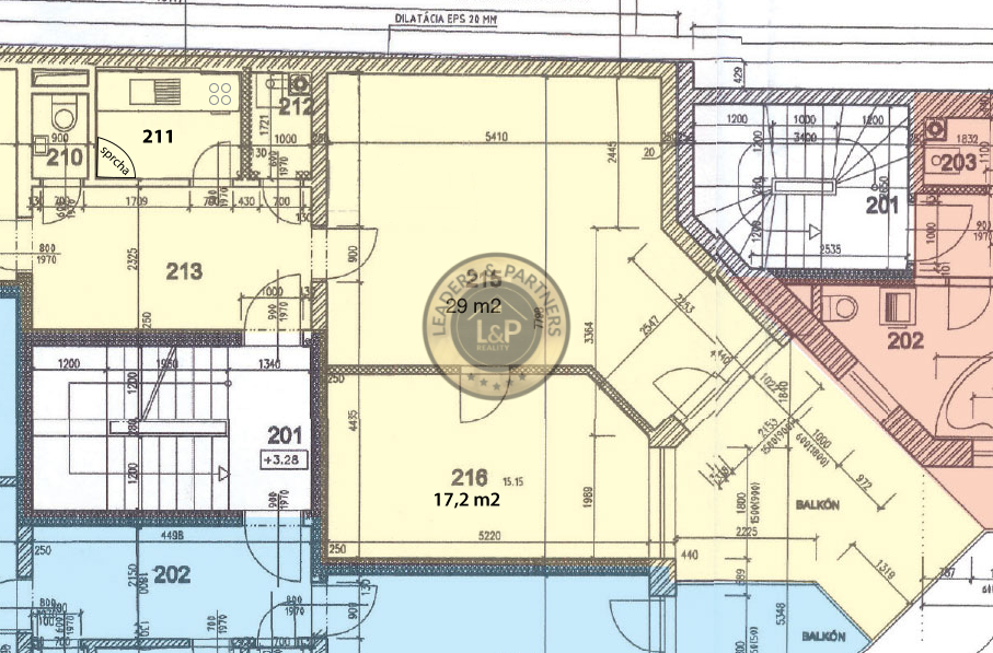 V prípade záujmu sú k dispozícii ešte ďalšie dve kancelárie (č. 215 a 216) spolu s rozlohou 46,2 m2 + veľká terasa(pôdorys medzi fotkami), ktoré sa ale dajú prenajať len spolu. Cena týchto priestorov je 690 Eur + DPH/mesiac +E.