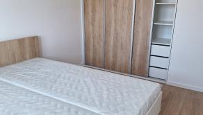 Spálňa je vybavená manželskou posteľou, nočnými stolíkmi, trojdielnou vstavanou skriňou.