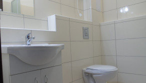 Dispozične byt pozostáva zo vstupnej chodby , kúpeľňa s toaletou , obývacia miestnosť s kuchyňou , spálňa.